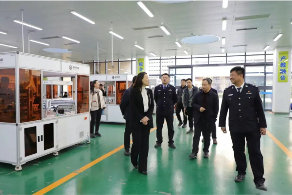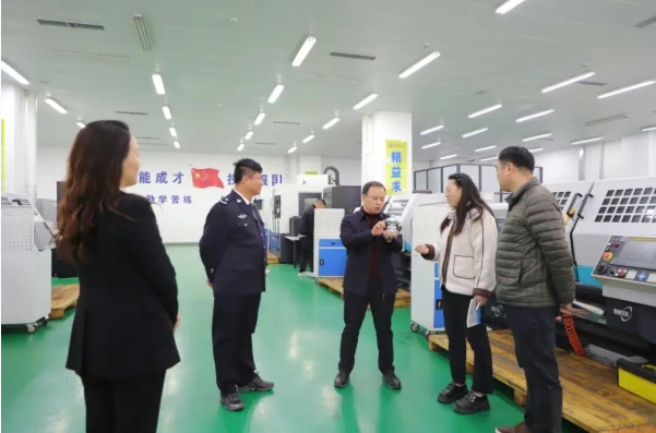 监狱长郎旭中、副监狱长徐光等人一行实地调研了学院实训车间、法治教育活动室等场所,围绕 “校园安全管理、法治教育阵地建设” 提出建议,为后续合作奠定基础。