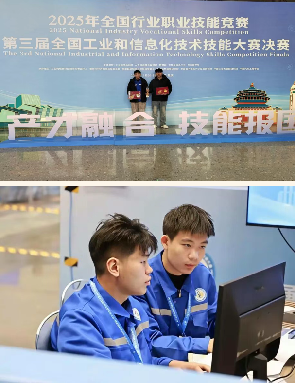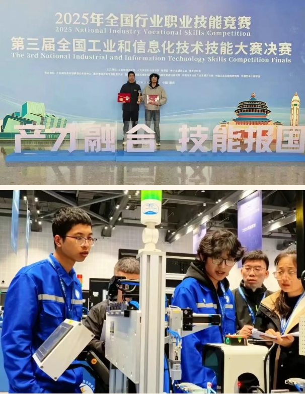 近日,由工业和信息化部、人力资源和社会保障部、教育部、中华全国总工会和共青团中央共同主办的第三届全国工业和信息化技术技能大赛(全国一类职业技能大赛)在重庆圆满落下帷幕。本届大赛聚焦智能网联新能源汽车、智能工业机器人、RISC-V等架构芯片开发与系统应用、工业大数据、制造业数字化转型、工业互联网创新应用等前沿技术领域,吸引了全国800余名技能精英同台竞技。经过激烈角逐,我院参赛选手凭借扎实的专业技能和出色的现场发挥,最终斩获两项二等奖,展现了我院高素质技能人才培养的优异成果。