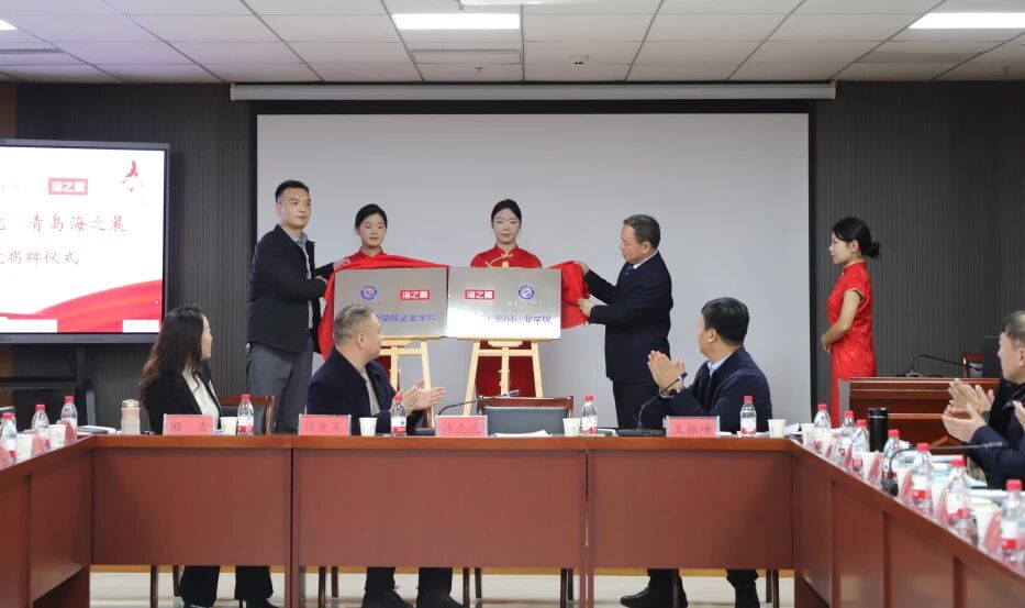 学院党委书记许克亮、青岛海之晨工业装备有限公司代表陈龙共同为“冀南技师学院海之晨工业AI产业学院”揭牌。
