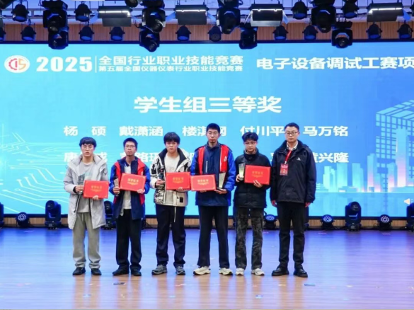 近日,2025-2026年全国行业职业技能竞赛——第五届全国仪器仪表行业职业技能竞赛电子设备调试工决赛在浙江温州圆满落幕。我院智能控制工程系学生组选手张洪帅、杨硕凭借扎实的专业功底与精湛的技艺,经过激烈⻆逐分别荣获一等奖(铜牌,第三名)与三等奖(第九名)。同时,我院被授予“优秀组织单位奖”,充分彰显了我院在高技能人才与产教融合方面的扎实成效。