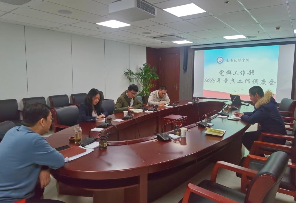 为系统总结学院2022年重点工作开展情况,进一步推动2023年各项工作目标任务的完成,2月7日下午,党群工作部在511会议室召开2023年重点工作调度会。党群工作部全体人员参加会议党委副书记宋学波主持会议,针对2023年度重点工作提出要求。