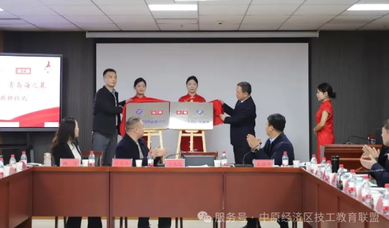 学院党委书记许克亮、青岛海之晨工业装备有限公司代表陈龙共同为“冀南技师学院海之晨工业AI产业学院”揭牌。
